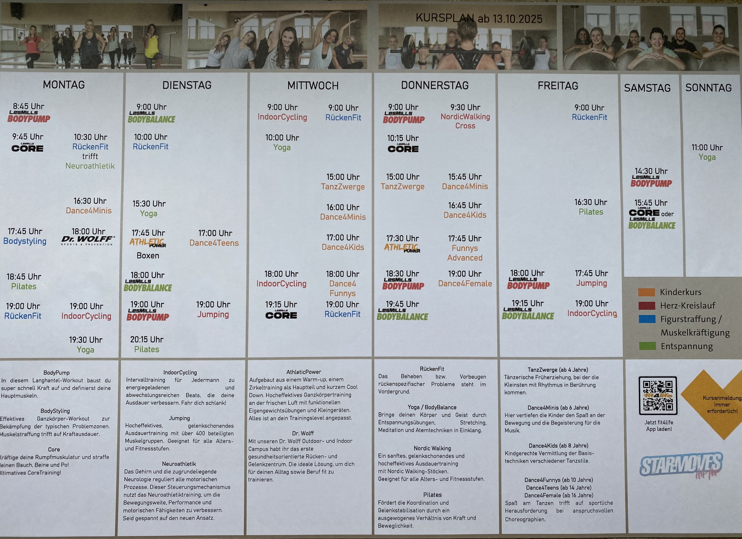 Kursplan – Anmeldung immer erforderlich – Jetzt App downloaden!